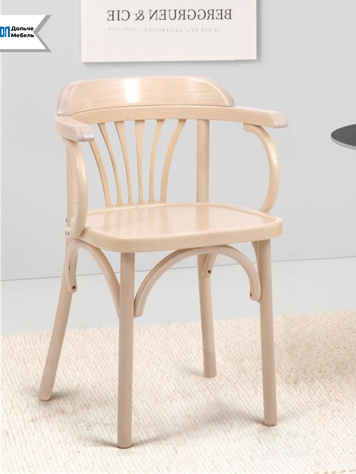 Кухонный венский стул с подлокотниками — это сочетание классического дизайна, прочности и комфорта. Стул выполнен из массива дерева по технологии гнутых элементов, что обеспечивает высокую надежность и устойчивость конструкции.