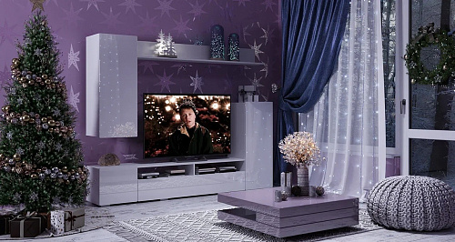 Белый цвет стенки "Диаманд" придает ей изысканный и современный вид. Белый глянец и скругленные фасады МДФ делают ее дизайн сдержанным и лаконичным, а отсутствие лицевой фурнитуры подчеркивает элегантность и простоту.