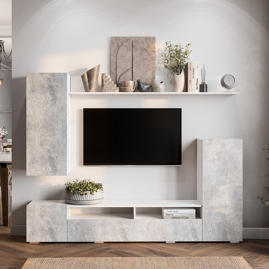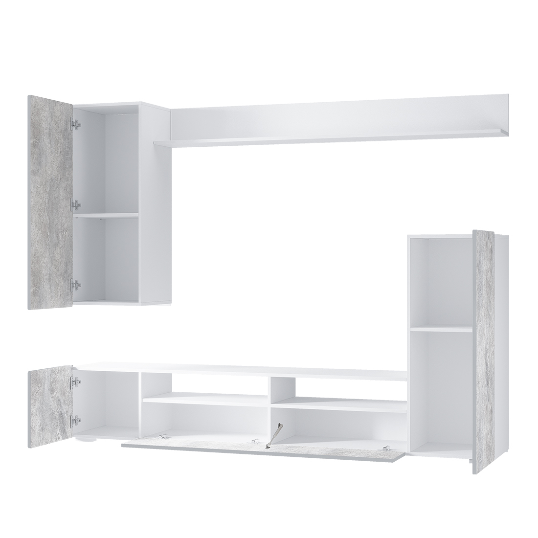 Гостиная "Диаманд" - идеальное решение для гостиной в современном стиле. Сдержанный дизайн позволит воплотить любую задумку в интерьере. Благодаря отсутствию лицевой фурнитуры гостиная смотрится более выразительно. Створки открываются путем захвата фасада рукой сверху или снизу. На верхней открытой полке вы сможете разместить свои любимые сувениры или фотографии.