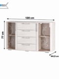 Габариты комода составляют 130 см в ширину, 77 см в высоту и 44 см в глубину, что позволяет разместить его даже в небольших помещениях.