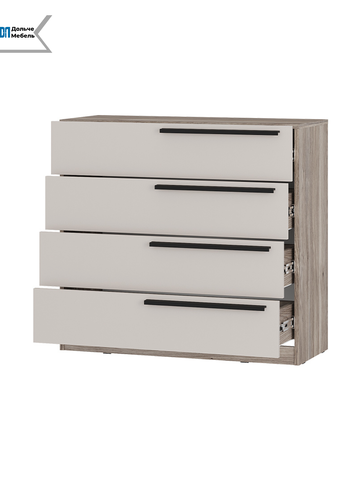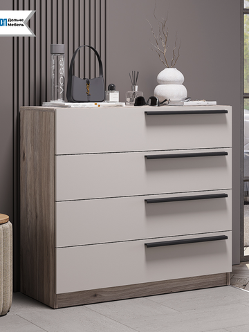Четыре вместительных ящика позволяют удобно хранить одежду, белье, аксессуары и бытовые мелочи. Комод подходит как для повседневного использования в спальне, так и для размещения в прихожей или гардеробной зоне.