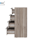 Цветовое сочетание дуб смоки и кашемир делает модель универсальной для светлых и тёплых интерьеров в современном, скандинавском и минималистичном стиле. Лаконичные фасады и длинные ручки подчёркивают аккуратный внешний вид мебели.