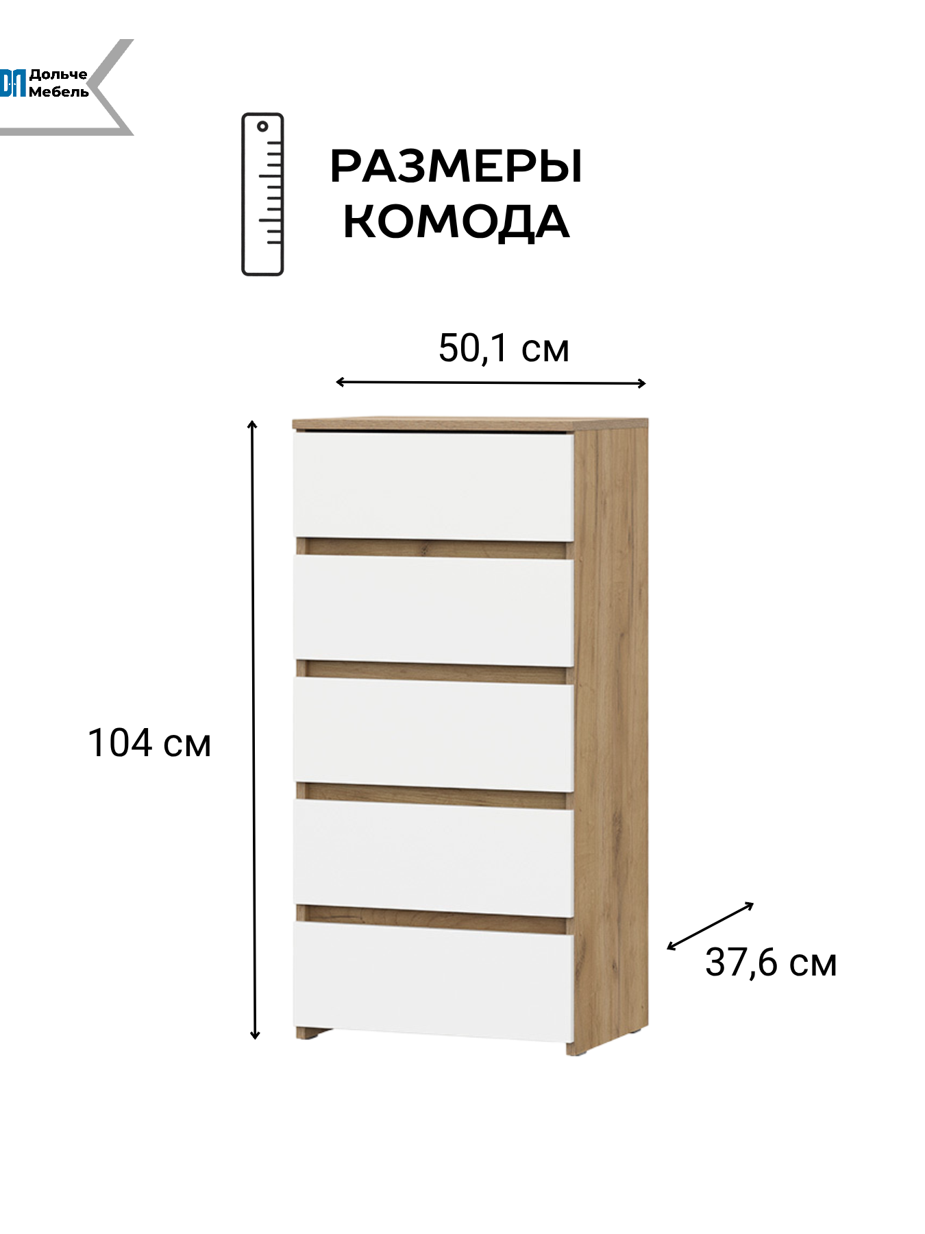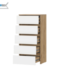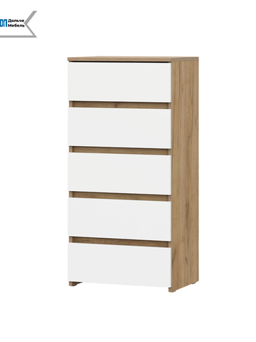 Если вы ищете функциональный комод для одежды большой вместимости, модель «Некст 1» от Арника создана специально для вас. Благодаря вертикальной конструкции с 5 выдвижными ящиками, он позволяет задействовать высоту комнаты, экономя полезную площадь пола. Сочетание теплого оттенка «дуб золотой» и чистых белых фасадов делает этот комод белый универсальным дополнением для скандинавского стиля, минимализма или лофта.