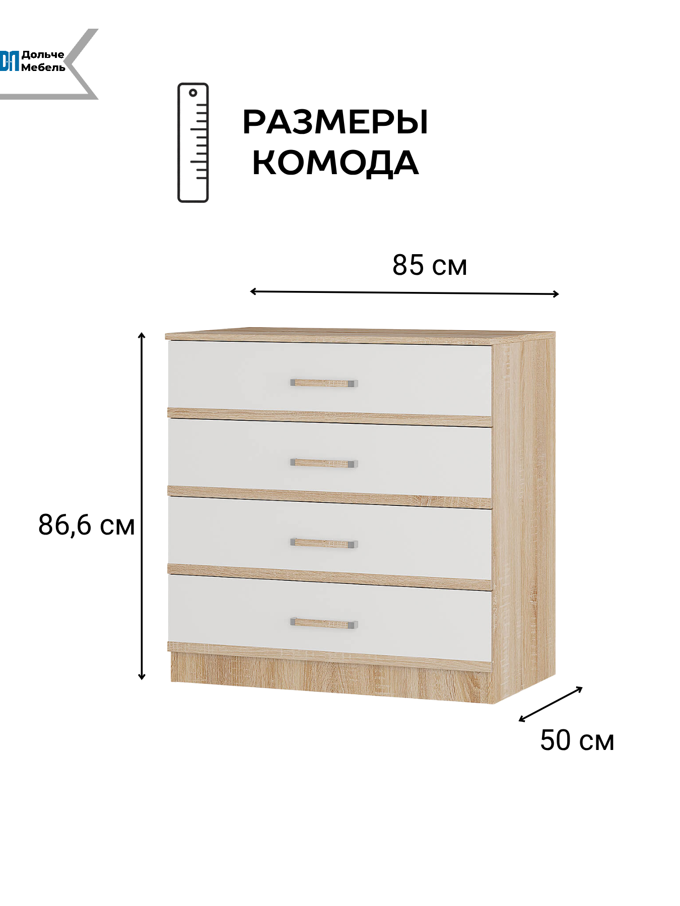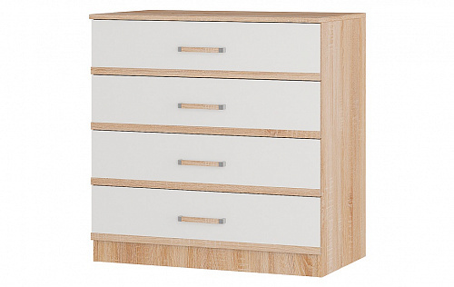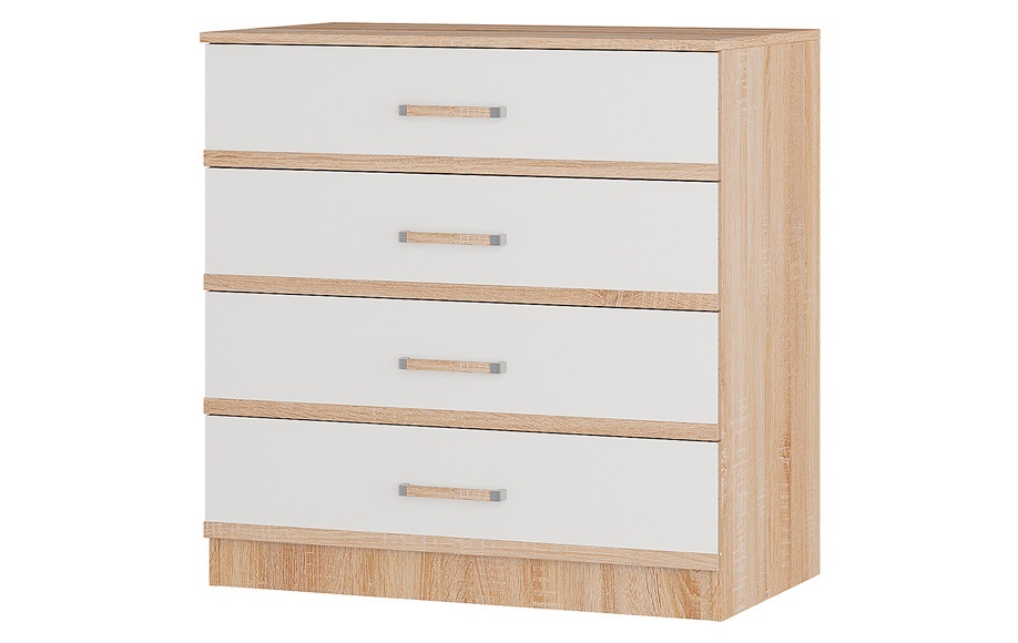 Ищете недорогой, но вместительный комод в скандинавском или эко-стиле? Советуем присмотреться к модели из коллекции Сакура, которая уже успела полюбиться покупателям своей практичностью и приятным дизайном. Комод оснащен четырьмя ящиками на роликовых направляющих. Корпус выполнен в декоре дуб сонома с имитацией рисунка натурального дерева, фасады чисто белые. Комод подойдет для хранения вещей сложенном виде, белья и аксессуаров. Особенности эко-декор "дуб сонома/белый" увеличенная вместимость роликовые направляющие на ящиках