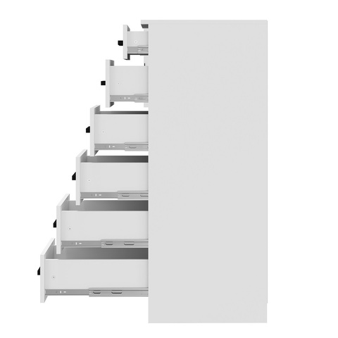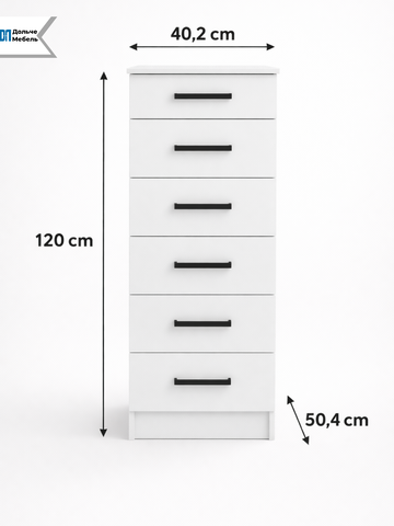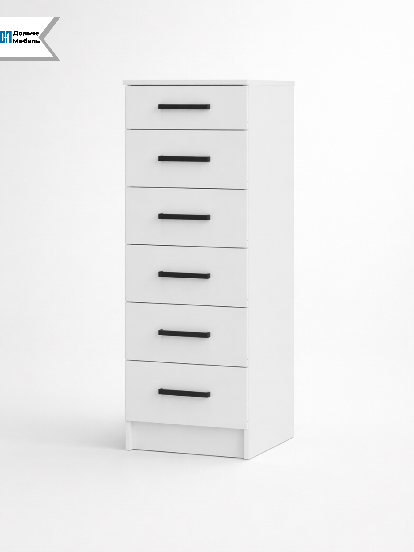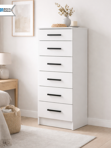 Модель оснащена шестью вместительными выдвижными ящиками, которые позволяют удобно организовать хранение вещей и поддерживать порядок. Вертикальная конструкция экономит место на полу, при этом обеспечивает большой полезный объём.