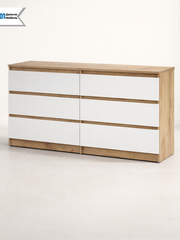 Комод с ящиками для одежды 138 см Арника Денвер, большой комод в спальню и гостиную, цвет дуб золотой / белый