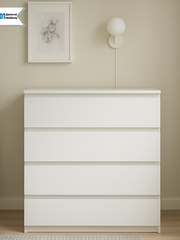 Комод Денвер для одежды высокий с 4 ящиками, 80 см, белый матовый, в спальню и детскую