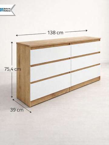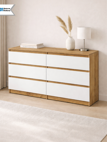 Большой комод Арника Денвер шириной 138 см — практичное и стильное решение для хранения одежды, белья и аксессуаров в спальне, гостиной или гардеробной. Модель сочетает вместительность, современный дизайн и компактную глубину, что делает её удобной даже для квартир с ограниченным пространством.