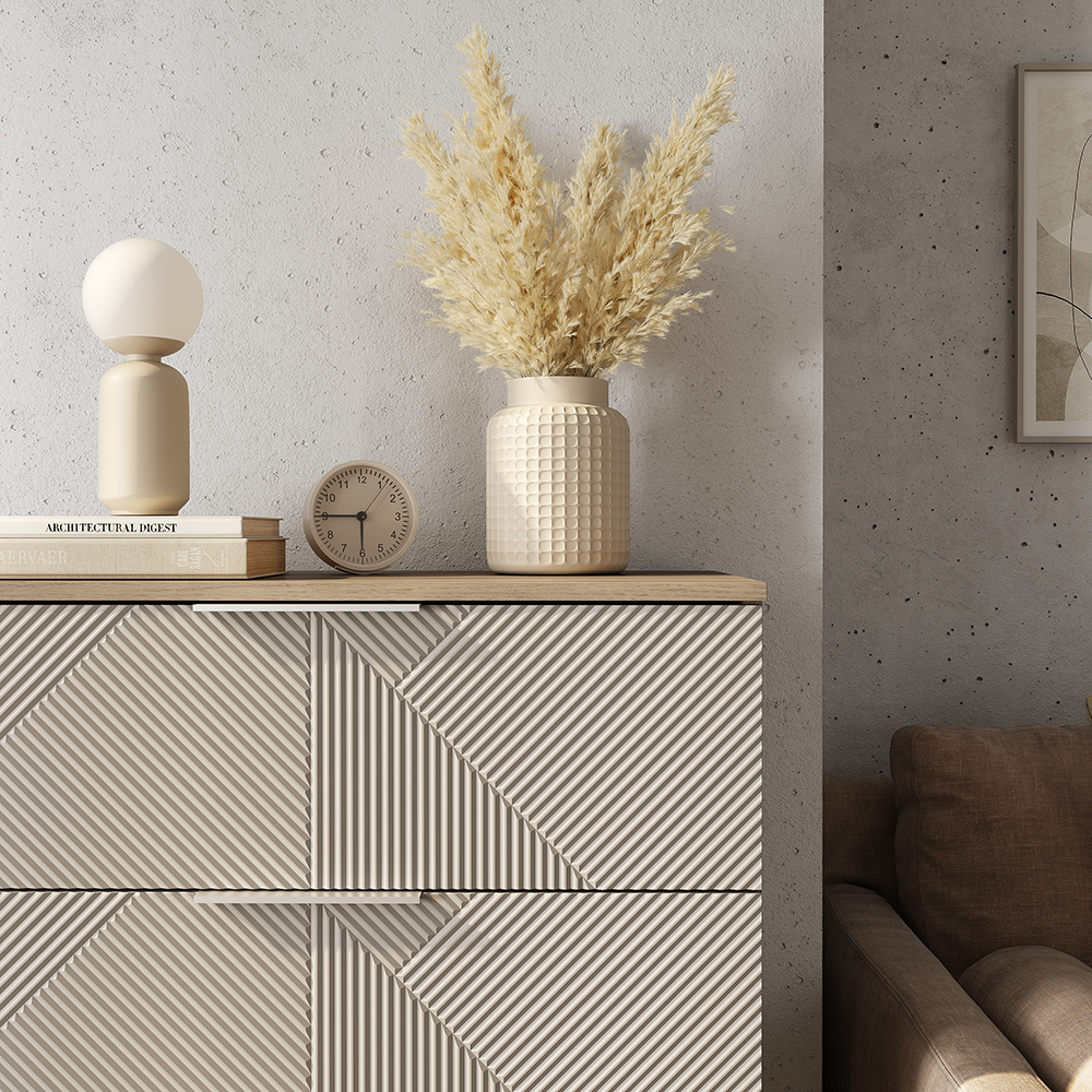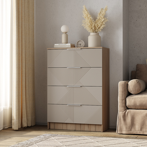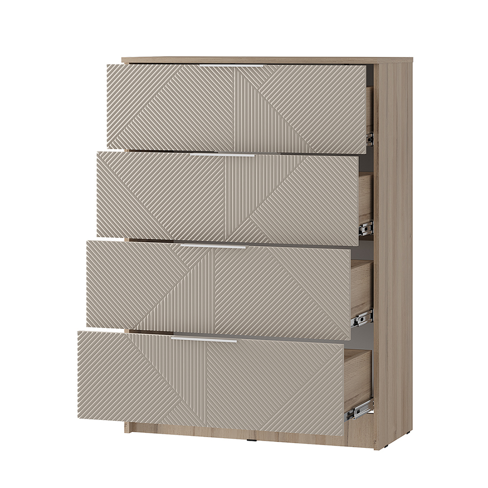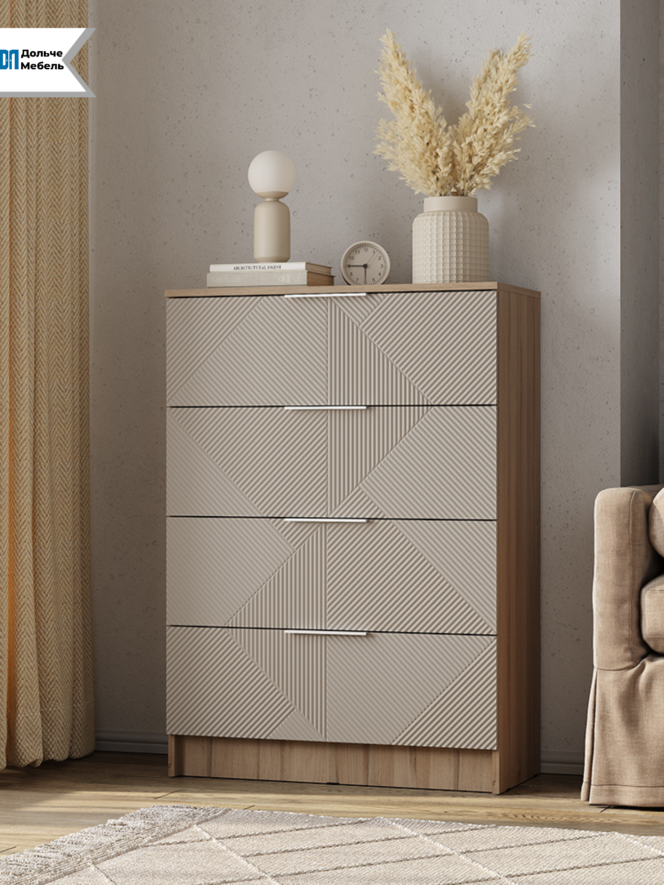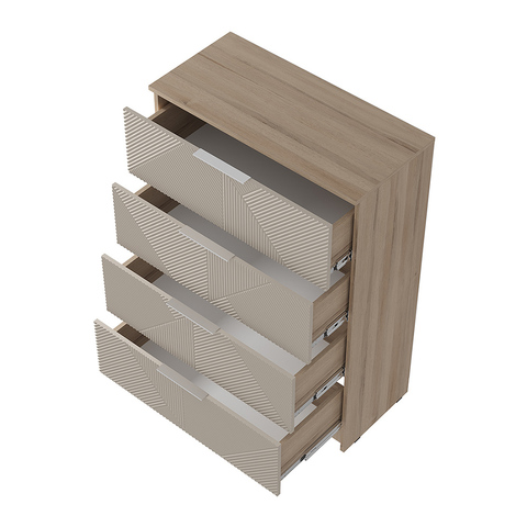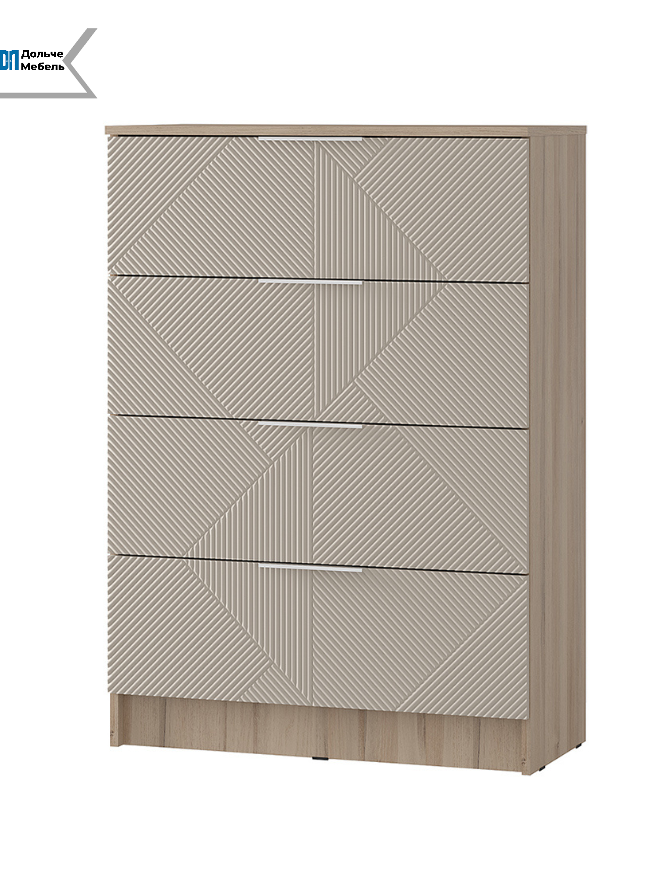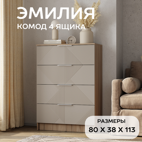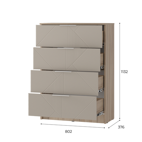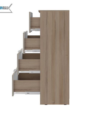 Комод для одежды большой БТС Мебель Эмилия КМ-02, 4 ящика, современный в спальню и гостиную, цвет дуб смоки / айриш