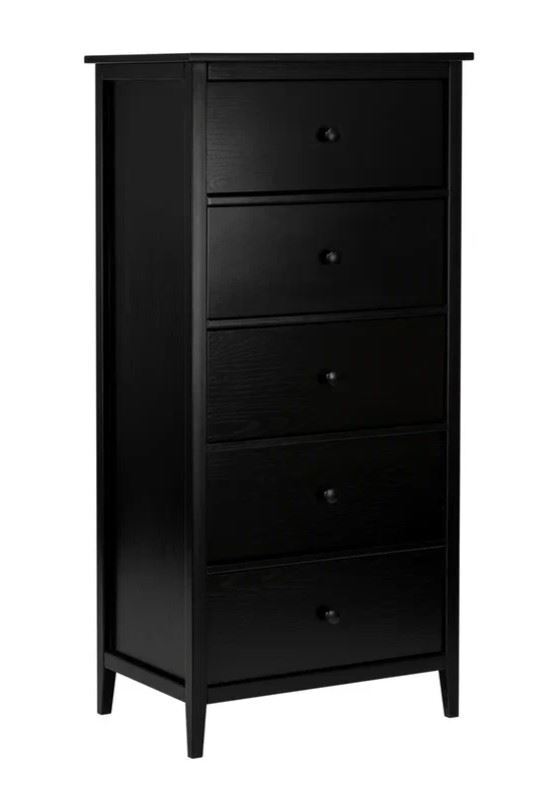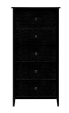 Если вы ищете вместительный, но компактный комод для одежды, модель «Хитроу» создана специально для вас. Благодаря вертикальной конструкции и высоте 131,6 см, он занимает минимум места на полу, обеспечивая при этом впечатляющий объем хранения. Глубокий черный цвет с текстурой дерева придает мебели премиальный вид, который идеально впишется в стили лофт, минимализм или сканди.