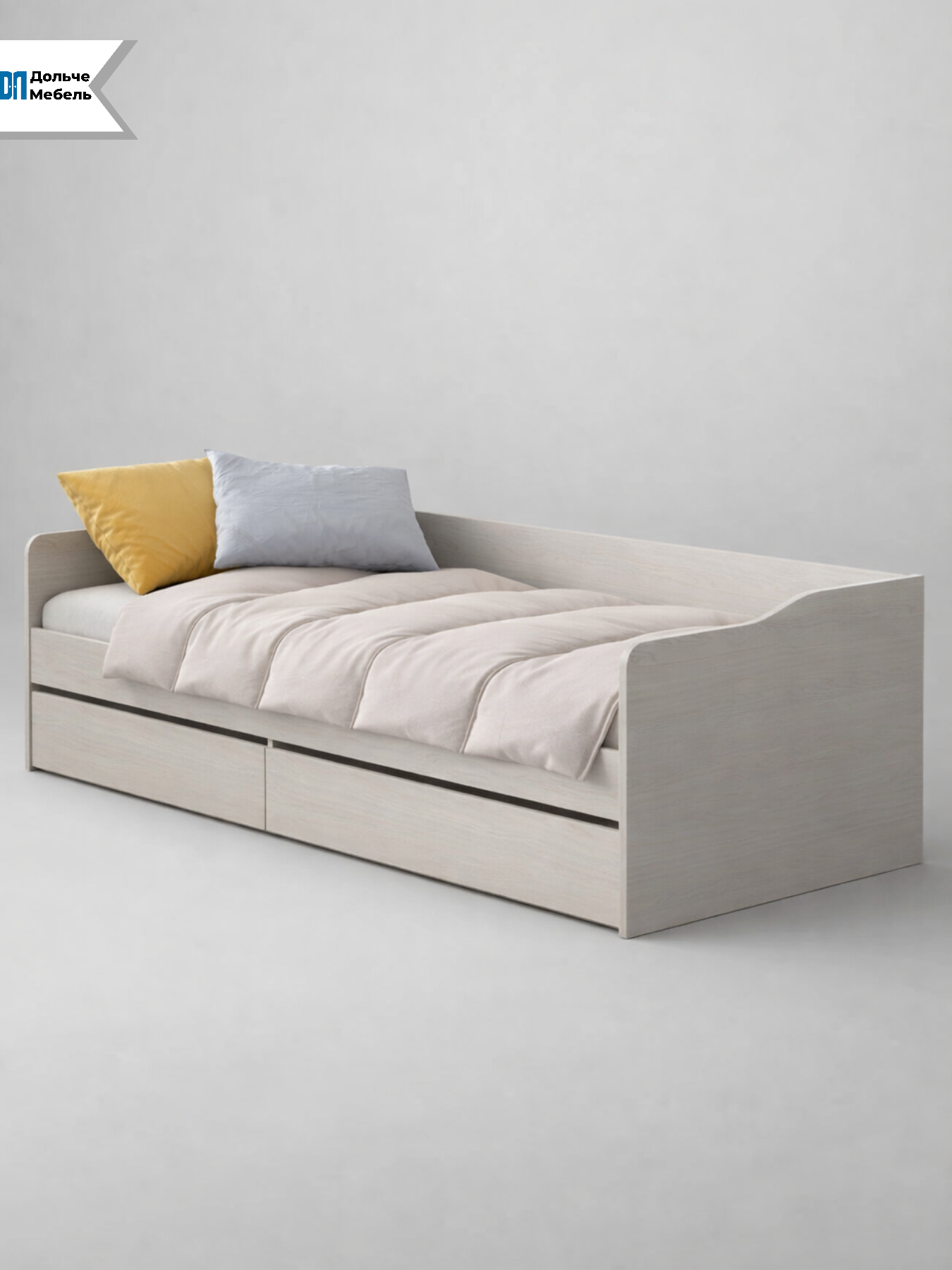 Кровать оснащена основанием, что позволяет использовать матрас без дополнительных элементов. Продуманная конструкция с бортиками обеспечивает аккуратный внешний вид и дополнительный комфорт в ежедневном использовании.