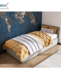 Эта односпальная кровать — гармоничное сочетание комфорта и долговечности. Благодаря лаконичному дизайну и обивке из качественной серой ткани, она идеально вписывается в интерьеры в стиле сканди, минимализм или лофт. Мягкое изголовье не только придает уют, но и позволяет с комфортом читать или работать с ноутбуком, опираясь на него.