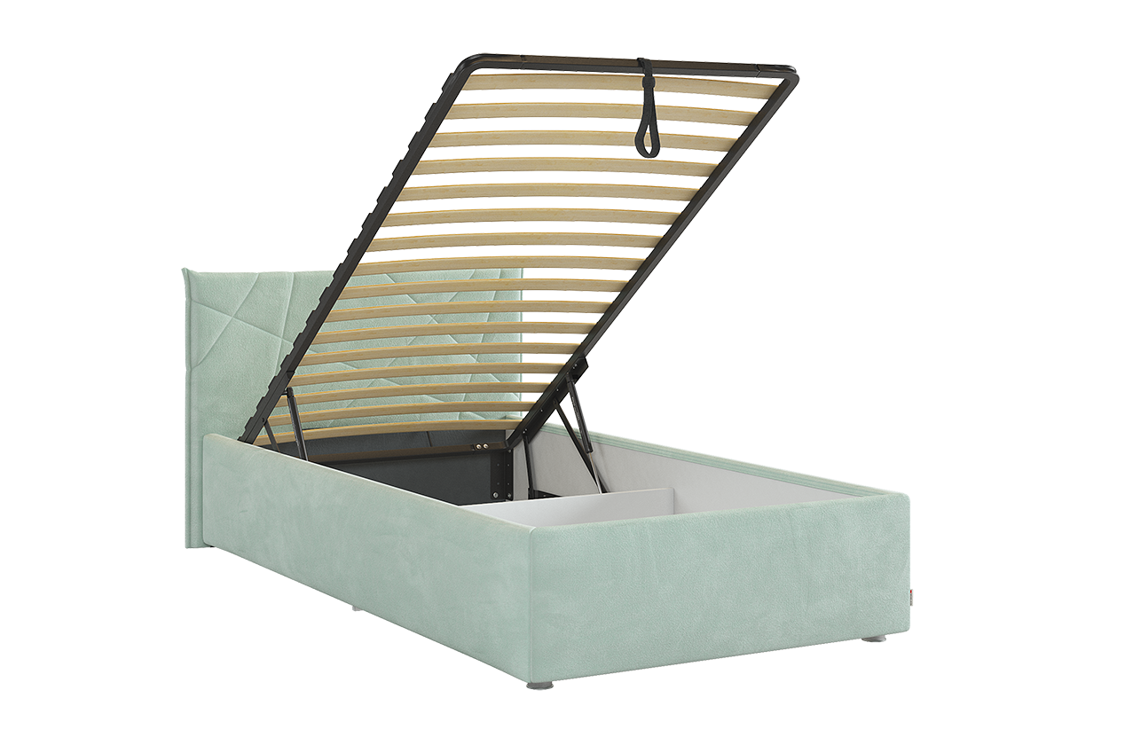 Кровать с подъемным механизмом Квест 90х200 см, цвет мята (велюр)
