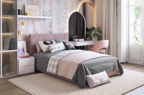 Кровать с подъемным механизмом Квест 120х200 см, цвет пудра (велюр)