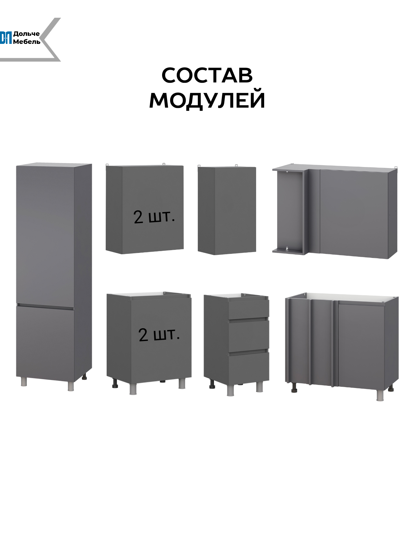 Кухонный гарнитур Денвер - это практичное решение для организации кухонной зоны в малогабаритной квартире или квартире-студии. Столешница в комплекте не идет, приобретается отдельно. Особенности: — Корпус ЛДСП, графит серый — Фасад ЛДСП, графит серый — Скрытая фурнитура — Направляющие ящиков: Роликовые — Опоры пластиковые регулируемые, 10 см. — Столешница в комплект не входит