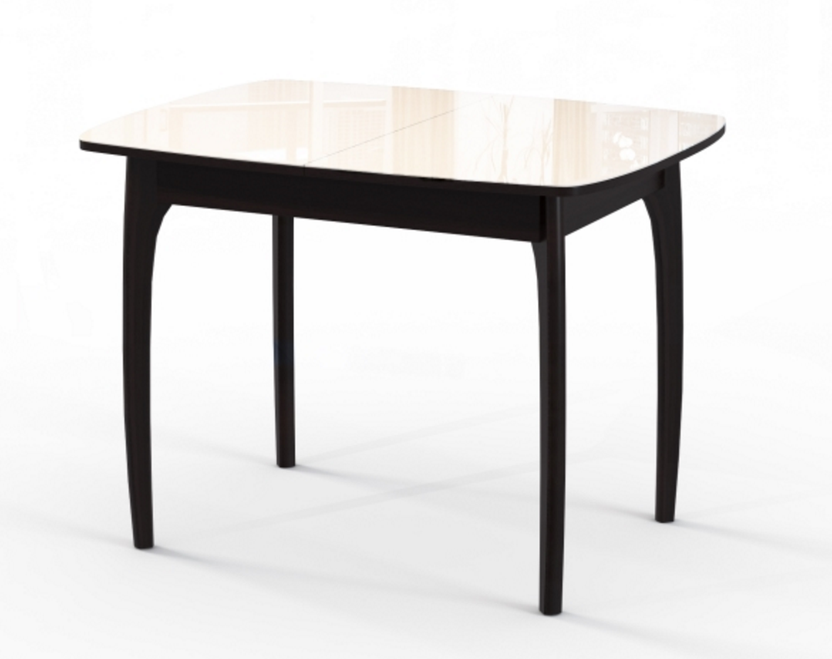 Размеры: ширина 1050 (1420), глубина 750, высота 740 мм. Материал массив бука, стекло. Цвет дерева венге, цвет стекла бежевое.