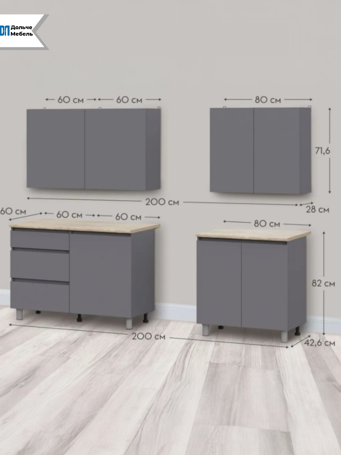 Кухонный гарнитур Арника Денвер - это современное и стильное решение для вашей кухни. Изготовленный из качественного ЛДСП, этот гарнитур сочетает в себе прочность и долговечность. Цвет графит серый/сонома придает гарнитуру элегантный и современный вид, который будет гармонично смотреться в любом интерьере.