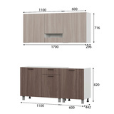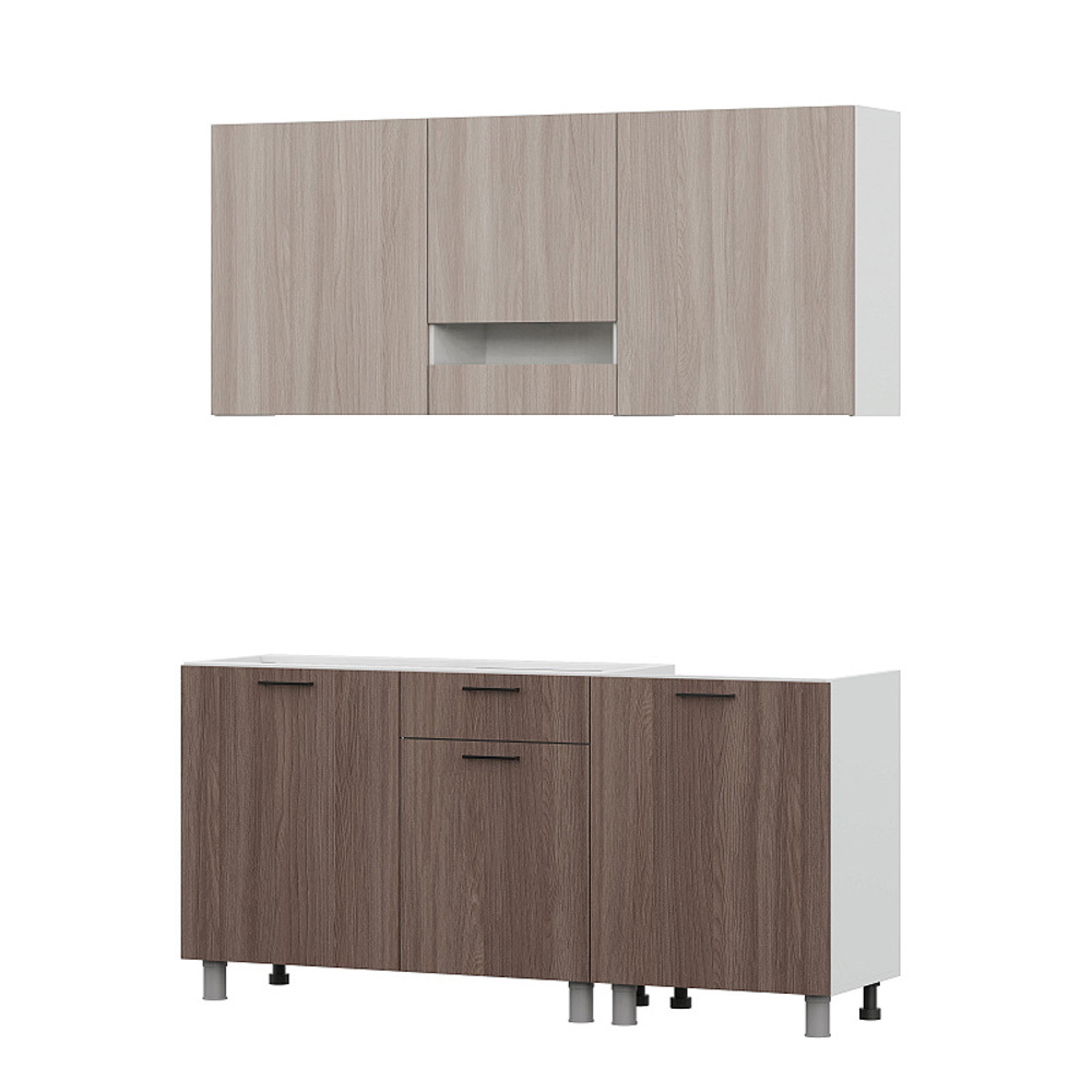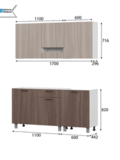 Гарнитур выполнен в универсальном сочетании цветов ясень шимо светлый и ясень шимо темный, что делает кухню практичной и визуально тёплой. Модульная конструкция позволяет при необходимости дополнять комплект другими секциями.