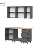 Модульная конструкция кухни дает возможность дополнять гарнитур другими кухонными модулями и создавать индивидуальную планировку. Такая кухня может использоваться как самостоятельный кухонный гарнитур или как часть более крупной кухонной системы.