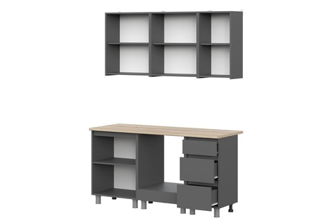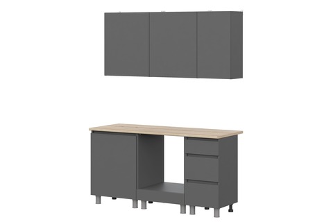 Гарнитур поставляется без столешницы, что позволяет подобрать рабочую поверхность нужного цвета и материала в зависимости от дизайна кухни и личных предпочтений.