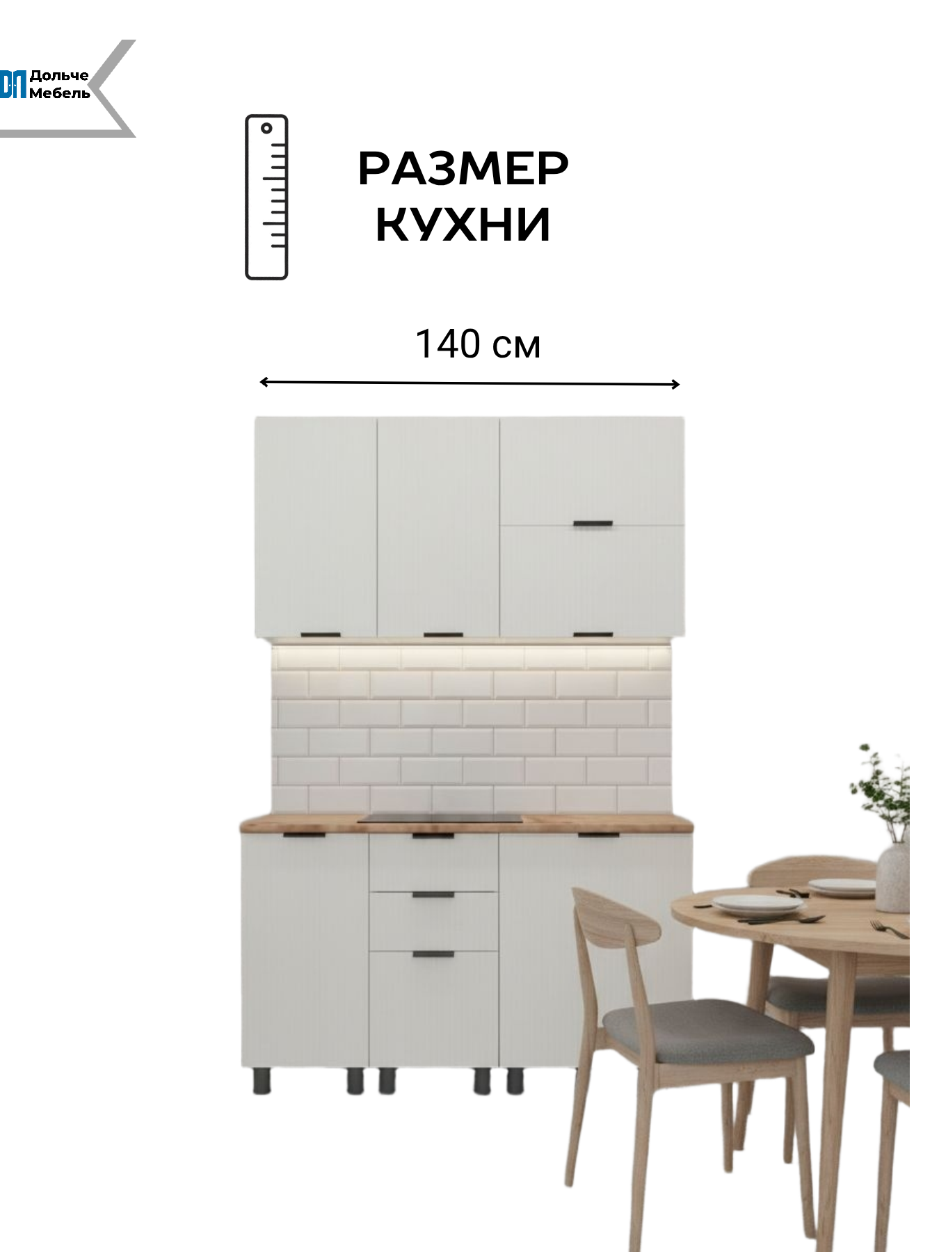 Кухонный гарнитур Аленушка длиной 140 см — практичное решение для небольшой кухни, студии или квартиры с ограниченным пространством. Прямая кухня компактного формата позволяет удобно организовать зону приготовления пищи, сохраняя комфорт и функциональность при минимальных габаритах.