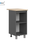 Нижний модуль от сочетает в себе строгую эстетику графитового фасада и теплоту древесной фактуры столешницы. Благодаря компактной ширине 40 см, стол легко впишется даже в небольшое пространство, обеспечив при этом полноценное место для хранения и приготовления пищи.
