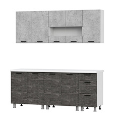 Готовая кухня Модус (без столешницы), Белый, Цемент светлый, Камень темный