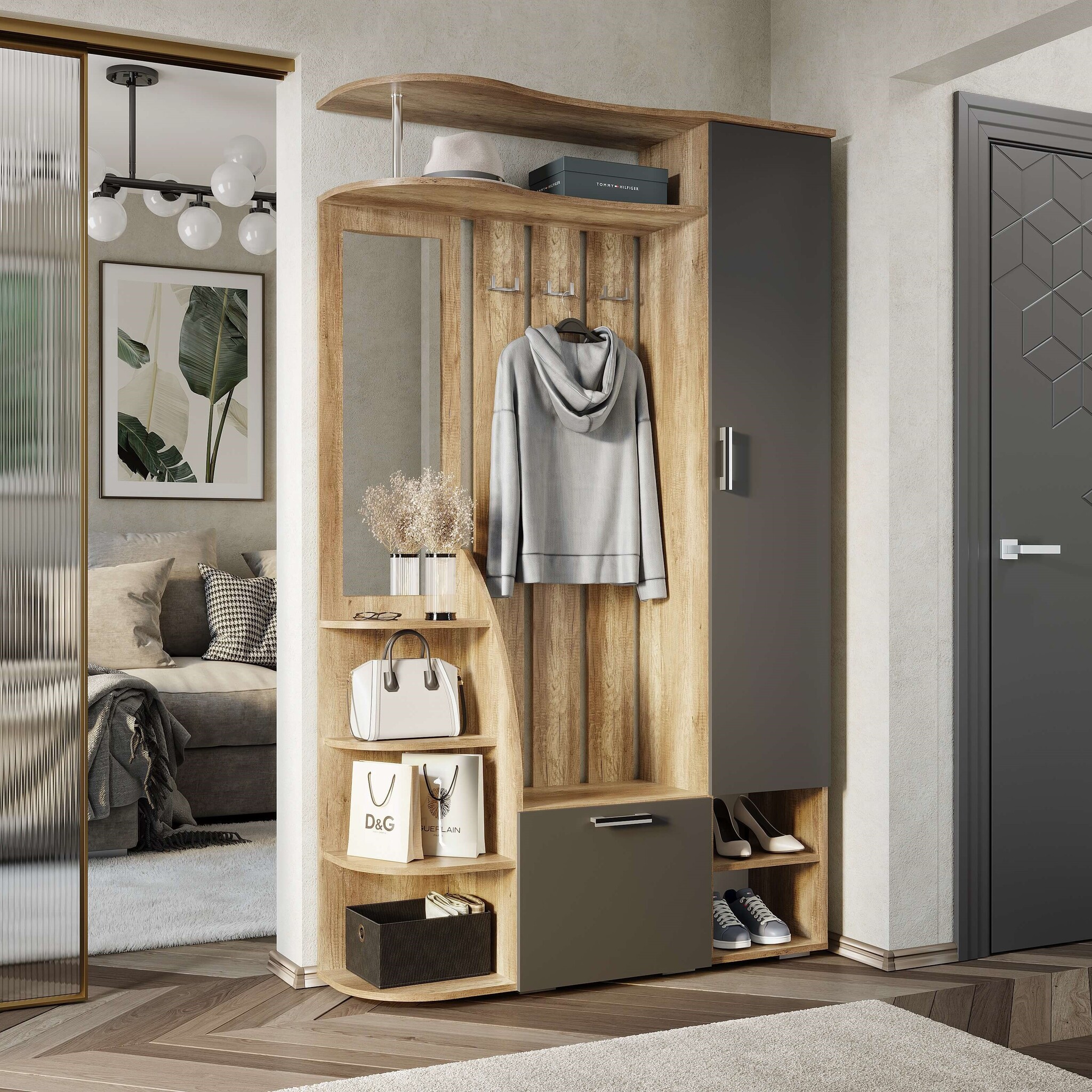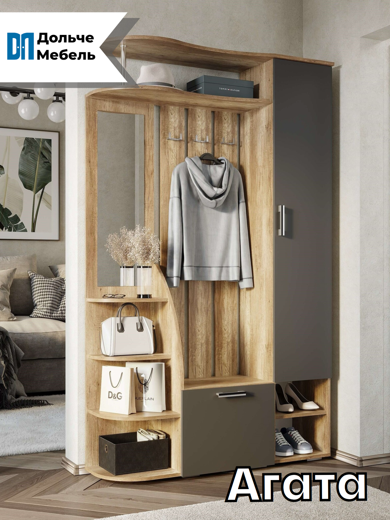Прихожая мебель "Агата" от БТС Мебель - это сочетание стиля и функциональности. Выполненная в современном стиле, она подойдет для любого интерьера. Цвет дуб каньон/графит серый придает мебели изысканность и элегантность.