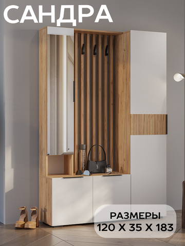 Прихожая "Сандра" от БТС Мебель - это комплект мебели, который поможет вам организовать пространство в коридоре. В комплект входят зеркало, вешалка, обувница и шкаф-пенал.