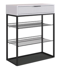 Обувница в прихожую Вельвет узкая металлическая в стиле лофт с ящиком, цвет белое дерево/белый матовый/черный муар