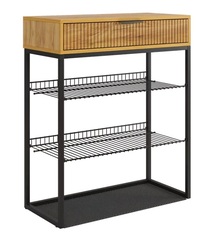 Обувница в прихожую Краш узкая металлическая в стиле лофт с ящиком, цвет черный муар/дуб крафт золотой