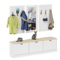 Прихожая П-6 Компоновка № 03, цвет белая шагрень/фасады МДФ белое дерево фрезеровка ромб