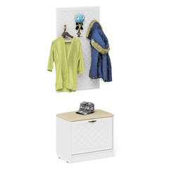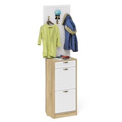Прихожая П-6 Тумба для обуви 2 секции + Вешалка, цвет дуб сонома/фасады МДФ белое дерево фрезеровка ромб