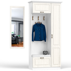 Ливерпуль Пуф 14.02 + Зеркало 03.242 + Шкаф для одежды + карниз 1000, цвет ясень ваниль/белый, универсальная сборка