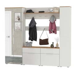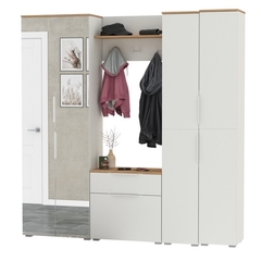 Октава Прихожая 29, цвет белый шагрень/дуб крафт золотой/фасады МДФ белый шагрень