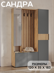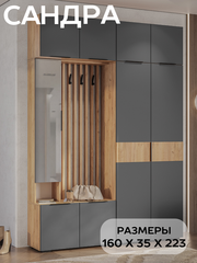 Прихожая мебель в коридор с пеналом БТС Мебель Сандра К2 с зеркалом, цвет дуб крафт, графит серый