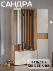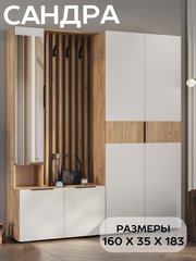 Прихожая мебель в коридор с пеналом БТС Мебель Сандра К2 с зеркалом, цвет дуб крафт, белый