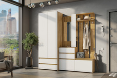 Прихожая мебель в коридор с пеналом БТС Мебель Сандра К3 с зеркалом, цвет дуб крафт, белый