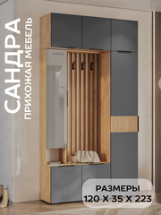 Прихожая мебель в коридор с пеналом БТС Мебель Сандра К3 с зеркалом, цвет дуб крафт, графит серый