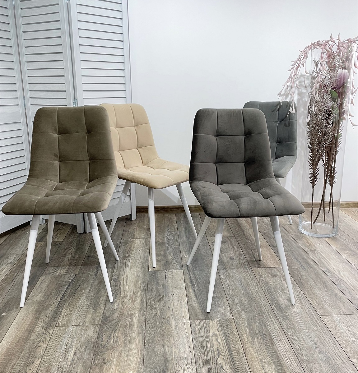Ножки стула - металл белого цвета.