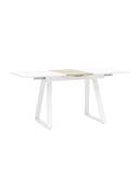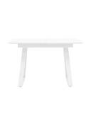 Столешница выполнена из прочного и долговечного МДФ. Светлая глянцевая поверхность столешницы гармонично сочетается с металлическими ножками белого цвета. Простая прямоугольная форма стола позволит легко вписать его в современный интерьер, стол украсит кухню, гостиную или современное кафе, ресторан.