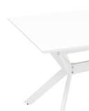 Столешница выполнена из прочного и долговечного МДФ. Светлая глянцевая поверхность столешницы гармонично сочетается с металлическими ножками цвета хром. Простая прямоугольная форма стола позволит легко вписать его в современный интерьер, стол украсит кухню, гостиную или современное кафе, ресторан.