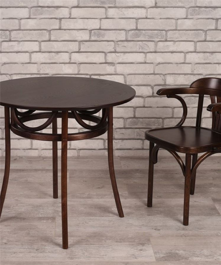 Стол выполнен в темном тоне и имеет коричневый цвет, что придает ему элегантный и стильный вид.