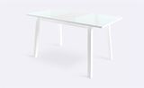 Стол кухонный раздвижной Тирк со стеклом прямоугольный выполнен в современном стиле, который гармонично впишется в интерьер вашей кухни или столовой. Белый цвет столешницы и основания из ЛДСП придает изделию легкость и воздушность.