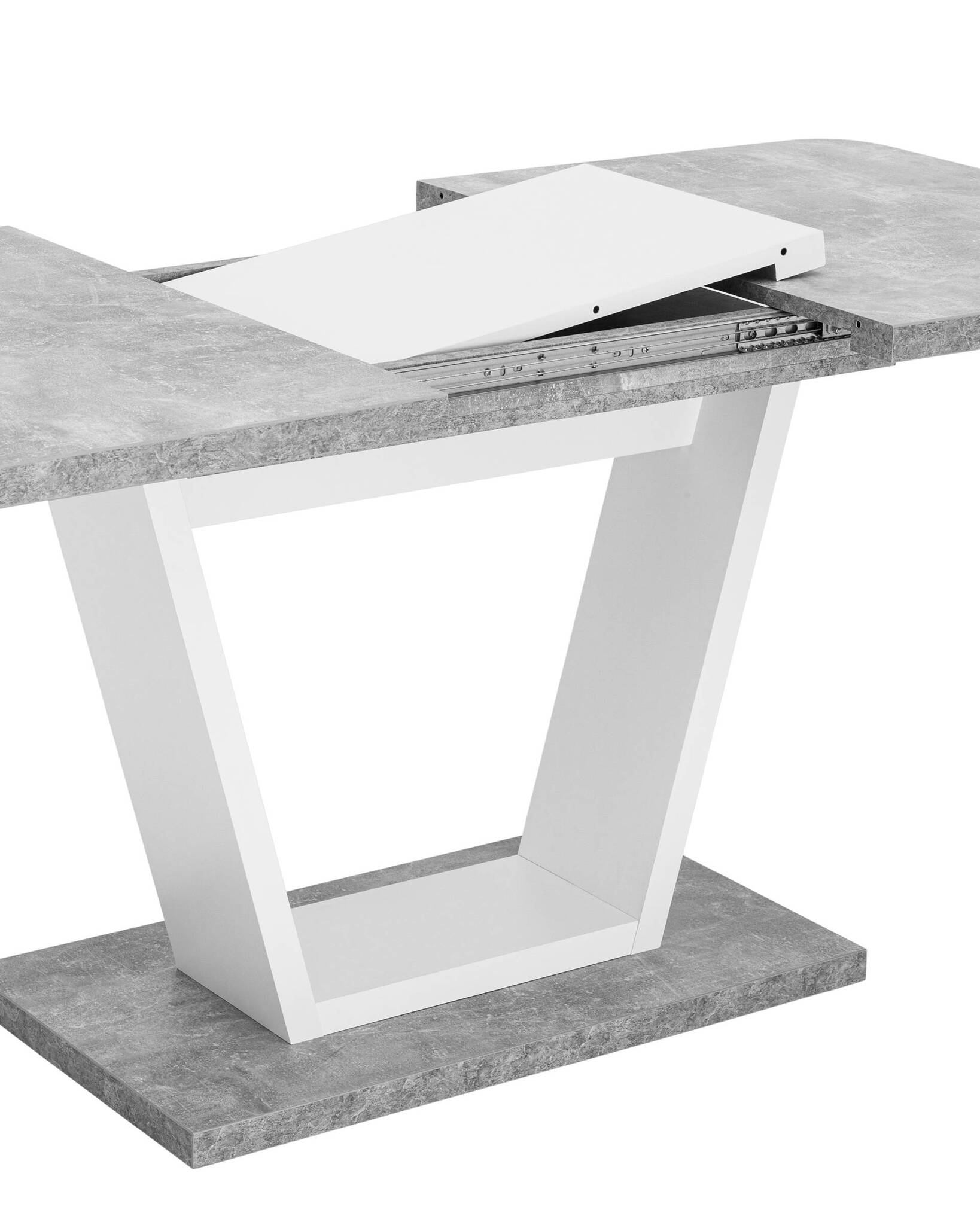 Стол оснащен синхронно-раздвижным механизмом. Разложить столешницу не составит труда даже подростку. Для того, чтобы разложить стол, достаточной потянуть за одну из половинок столешницы, вторая половинка при этом раздвинется автоматически, далее следует извлечь цельную вставку из основания стола, аккуратно уложить ее на основание, сдвинуть половинки и закрепить специальным зажимом.