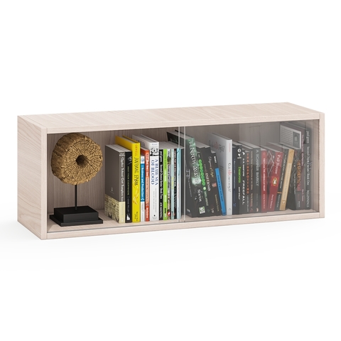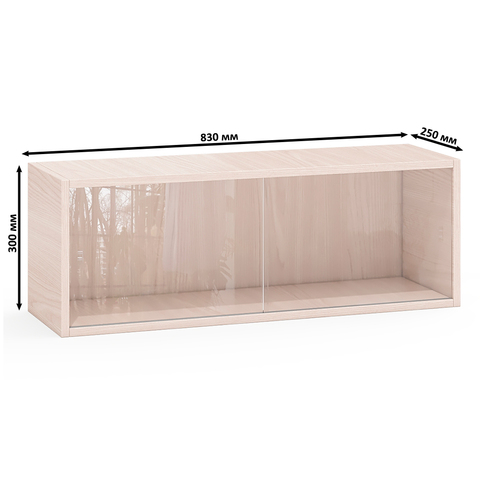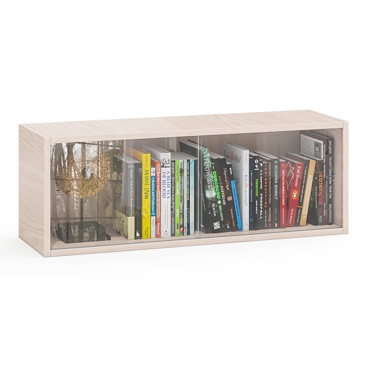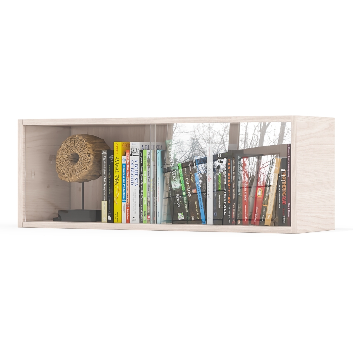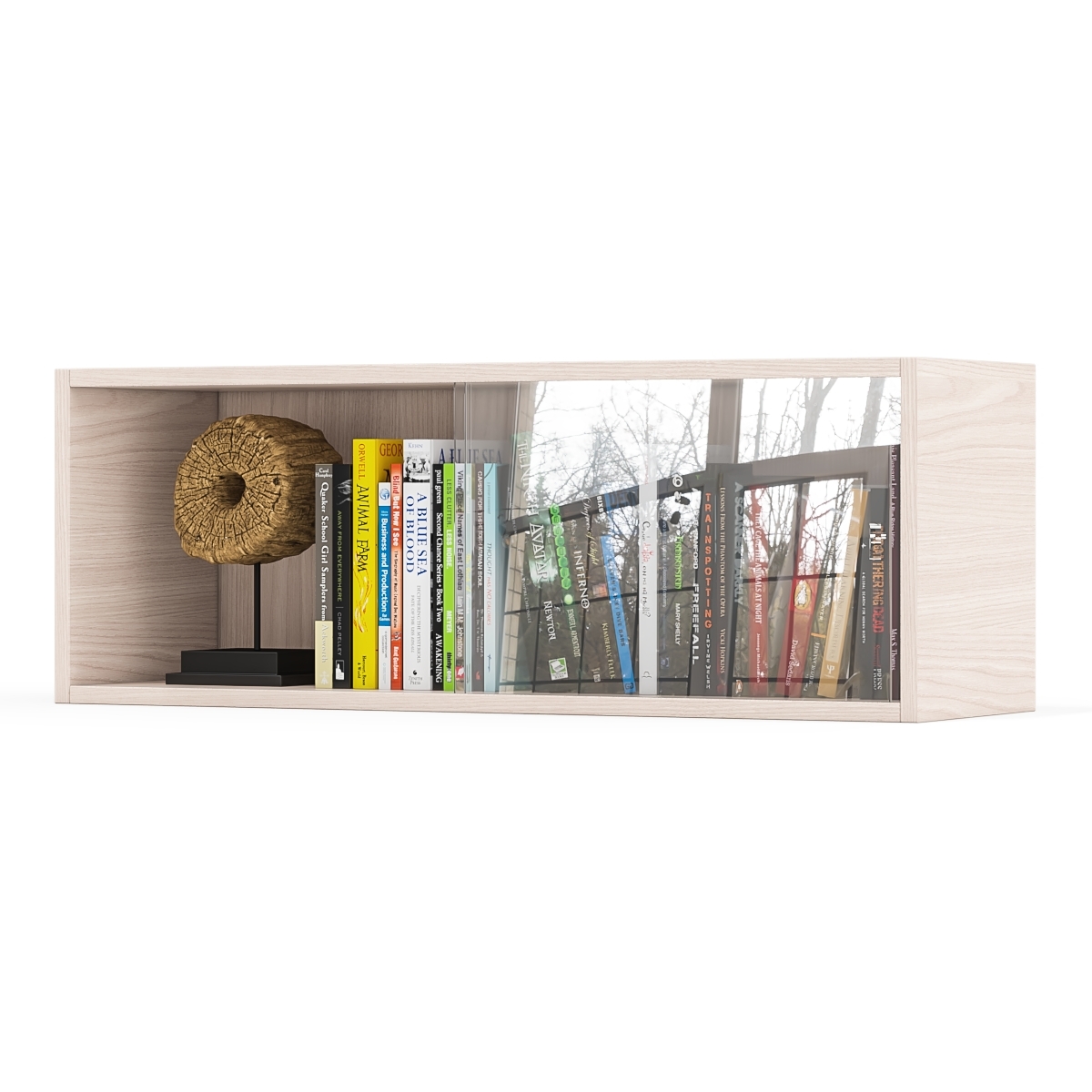 Полка книжная С-МД-КН01, цвет ясень шимо светлый, ШхГхВ 83х25х30 см., стеклянные дверцы