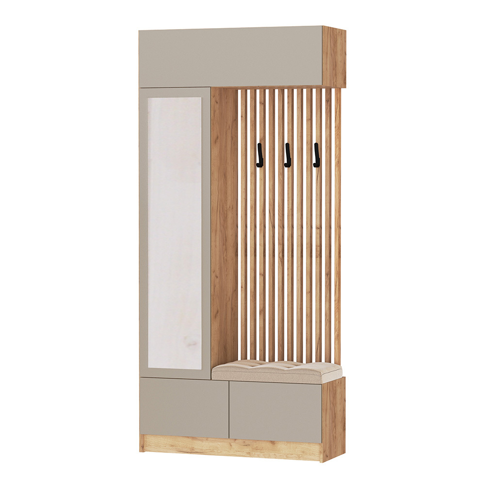 Ищете компактную и функциональную прихожую мебель в коридор? Гарнитур "Руэлла" – идеальное сочетание эргономики, стиля и практичности. Этот комплект для маленькой и узкой прихожей выполнен в элегантном цвете дуб крафт золотой с элементами кашемира, что придает интерьеру благородный вид.
