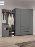 Благодаря компактной глубине 46 см прихожая не загромождает пространство, при этом вмещает всё необходимое для повседневного хранения. Современный цвет графит выглядит дорого, универсально сочетается с любым интерьером и не маркий в эксплуатации.