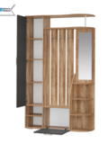 В состав прихожей "Агата" входят: секция с вешалками для верхней одежды, полка для головных уборов с вертикальной металлической штангой, пенальный шкаф с полками, открытые полки и закрытый отдел для обуви и вещей, а также зеркало.