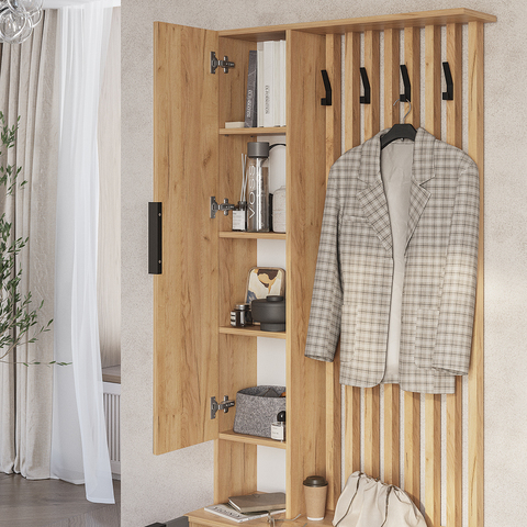 Прихожая "Сандра" от БТС Мебель - это комплект мебели, который поможет вам организовать пространство в коридоре. В комплект входят зеркало, вешалка, обувница и шкаф-пенал.